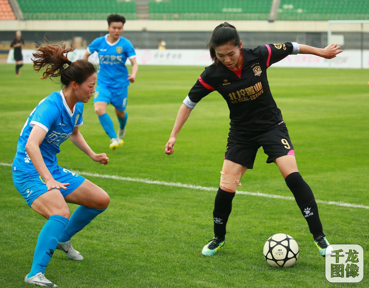 5月26日,中国足球协会女子足球超级联赛再战一场,北京北控置业队主场对阵来访的江苏苏宁女足。上半时,江苏队由外援前锋塔丽莎攻入一球,下半场,北京北控置业队由维罗妮卡和王妍雯连下两城,随后塔丽莎救主,经过90分钟比赛,双方战成2:2。图为本场比赛精彩瞬间。千龙网记者 戚连民摄