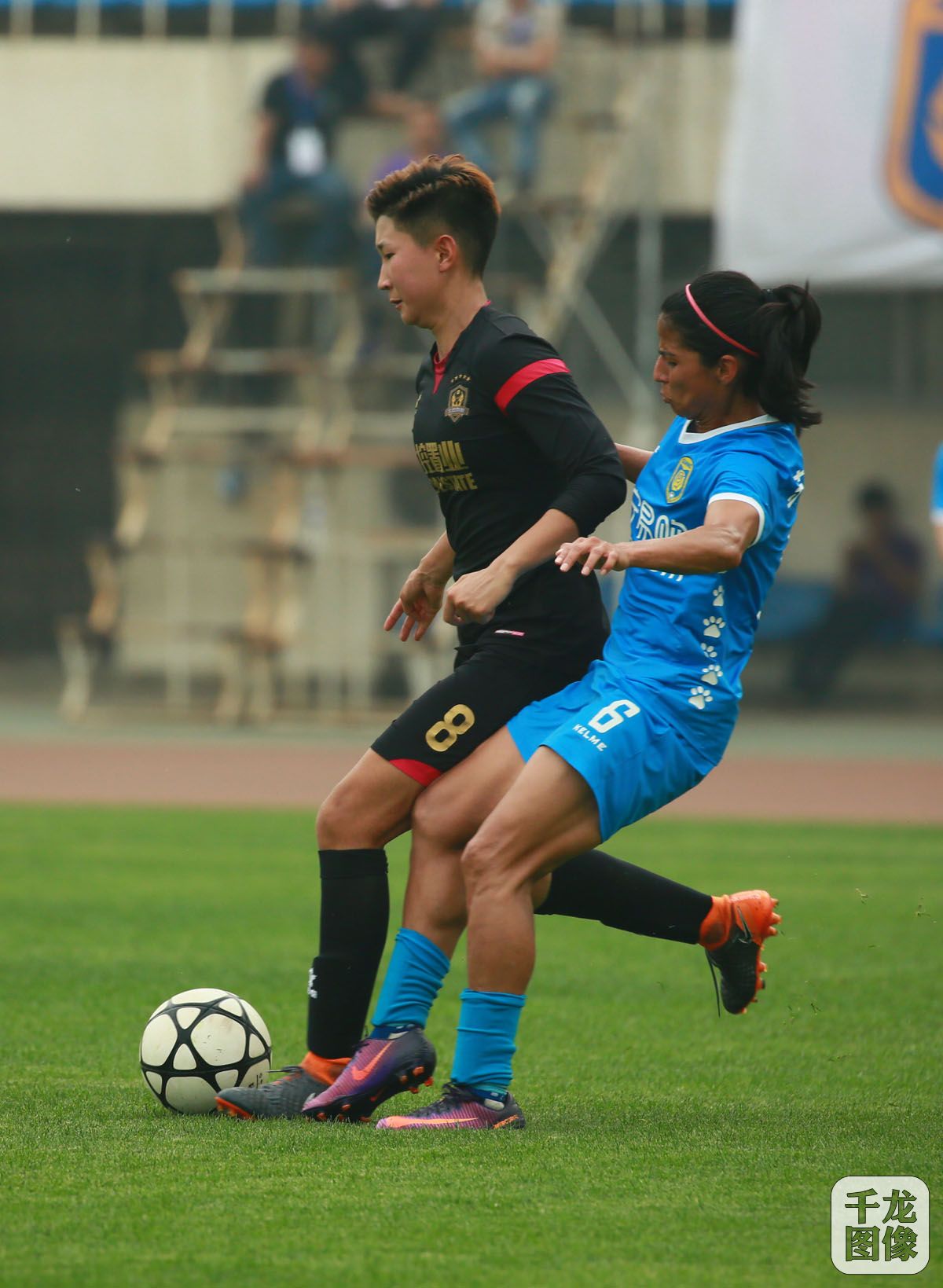 5月26日,中国足球协会女子足球超级联赛再战一场,北京北控置业队主场对阵来访的江苏苏宁女足。上半时,江苏队由外援前锋塔丽莎攻入一球,下半场,北京北控置业队由维罗妮卡和王妍雯连下两城,随后塔丽莎救主,经过90分钟比赛,双方战成2:2。图为本场比赛精彩瞬间。千龙网记者 戚连民摄