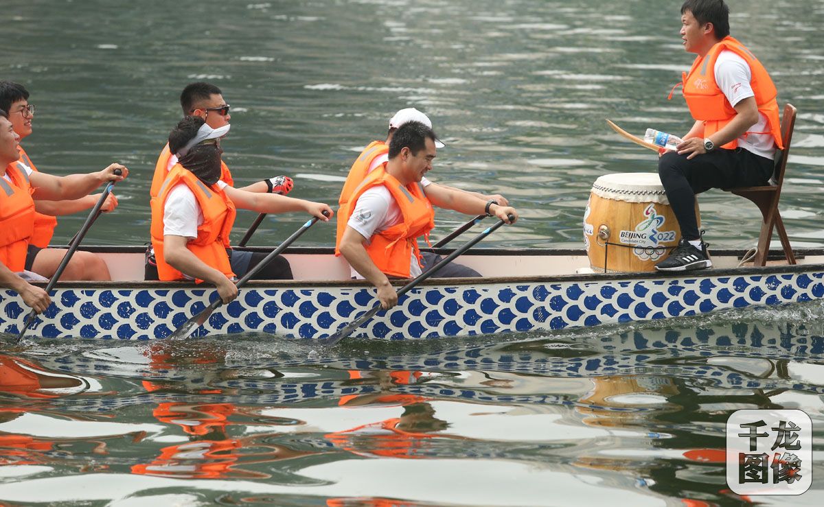 5月26日,海淀区“我们的节日”端午节龙舟赛开幕式在北京市龙舟训练基地八一湖举行。此次比赛共有来自海淀区政府、高校、高新企业单位的15支代表队,近300人参与。图为比赛现场。千龙网记者 戚连民摄