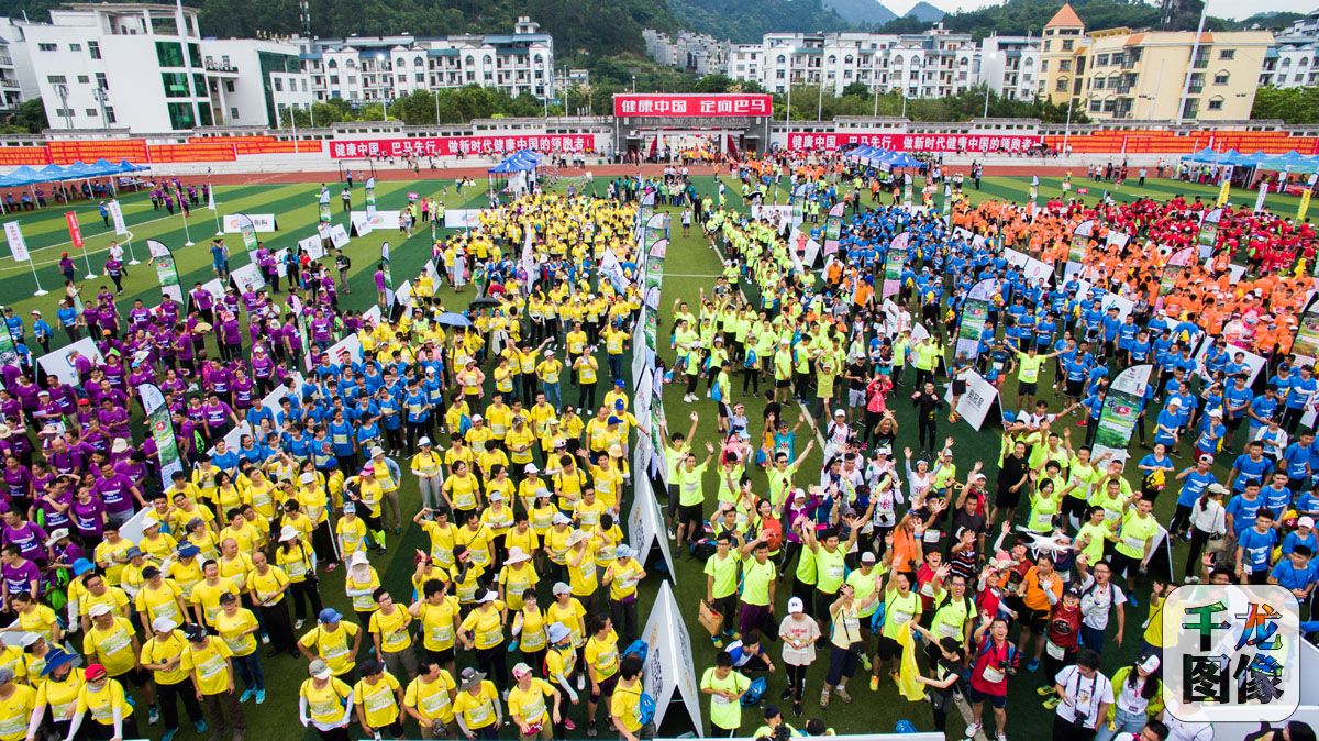 5月26日-27日,“2018中国杯国际定向越野巡回赛·广西巴马站”在巴马瑶族自治县举行。本次活动吸引了全国各地专业运动员和运动爱好者,以及广西各地市户外人群等8000余人参与。这是一场体育运动的嘉年华、一次全民健身的盛宴。图为比赛开幕式现场。千龙网发 主办方供图