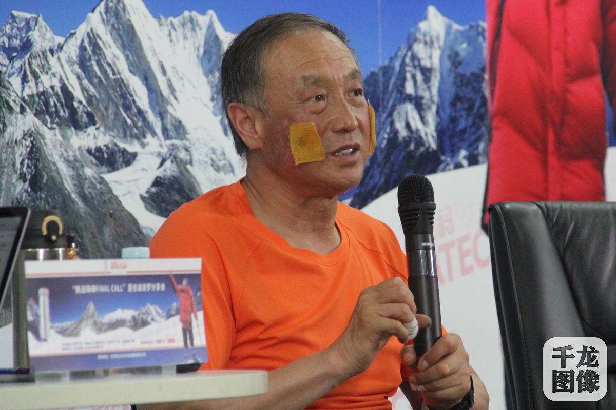 5月28日晚,登山家夏伯渝先生做客北京人民广播电台,与众多网友分享了自己的登山经历和心路历程。图为夏伯渝先生面部冻伤尚未痊愈。千龙网记者 黄业摄