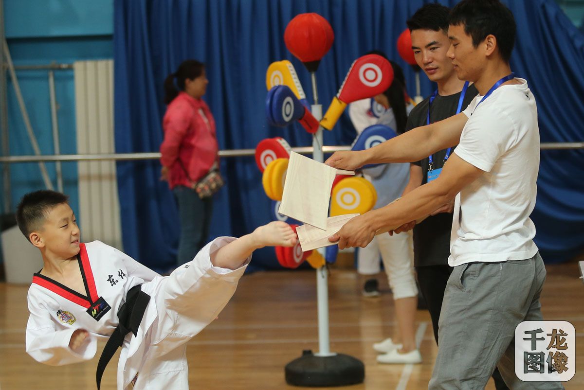 6月10日,阳光体育第八届“府学杯”东城区中小学生跆拳道比赛在地坛体育馆开赛,来自东城区21所中、小学、幼儿园,231名运动员参加比赛。图为参赛运动员在附馆练习。千龙网记者 戚连民摄