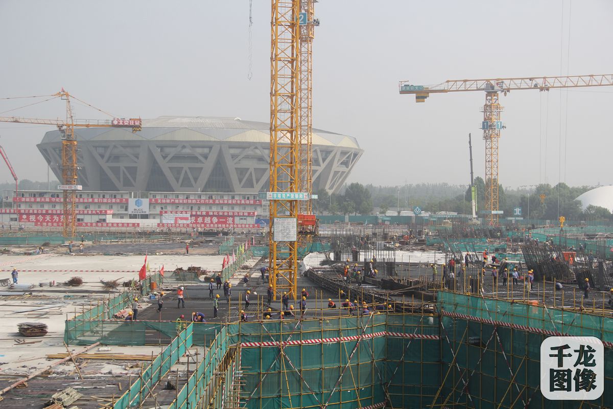 6月12日,建筑工人们正在国家速滑馆工地上紧张的工作着。千龙网记者 黄业摄