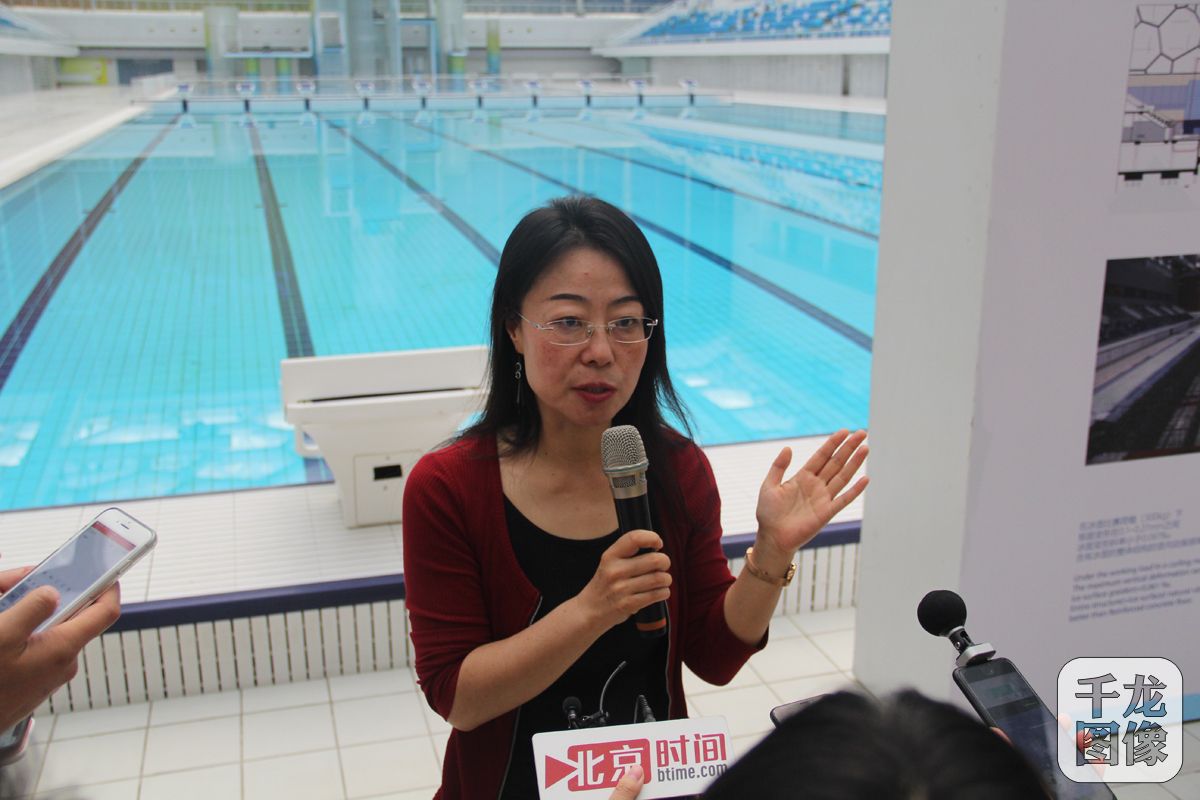 6月12日上午,北京冬奥组委规划建设部总体规划处副处长桂琳在水立方接受记者采访。千龙网记者 黄业摄