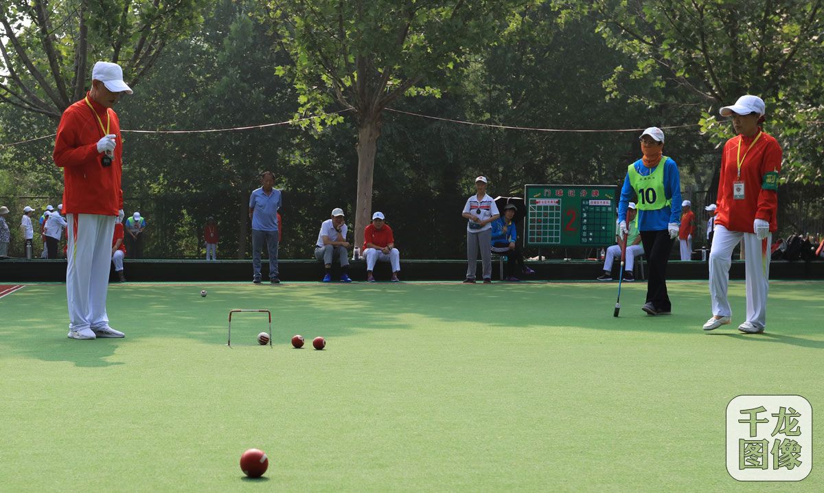 6月12日,北京市第十五届运动会群众项目门球比赛在房山体育场门球场举办了开幕式。本次比赛,13个区和燕山地区的14支代表队,共200余名运动员、教练员和领队参加。图为比赛现场。千龙网发 主办方供图