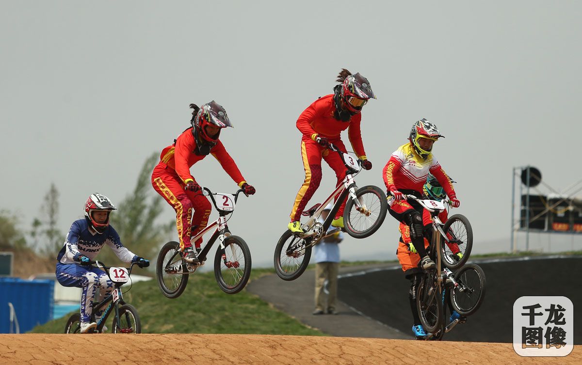 6月16日,2018年中国BMX自行车联赛第四站比赛在赤峰市敖汉旗的小轮车国际赛场激烈开赛。甘肃队在此战比赛中成最大赢家,其主力队员,同时也是联赛的前三站冠军——逯艳也不负众望,在多项比赛中拔得头筹,让“甘肃旋风”再次掀起。图为比赛现场。千龙网记者 戚连民摄