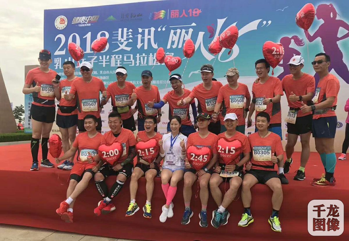 6月17日,2018斐讯“丽人18”乳山女子半程马拉松赛在山东乳山银滩旅游度假区大拇指广场激越鼓锣声中浪漫起跑。图为2000年悉尼奥运会女子20公里竞走冠军王丽萍(前排中)新华社高级记者、首都媒体跑团创始人兼领队汪涌(后排右四)等官方配速员合影。千龙网发 图片来自汪涌朋友圈和王者传奇公众号