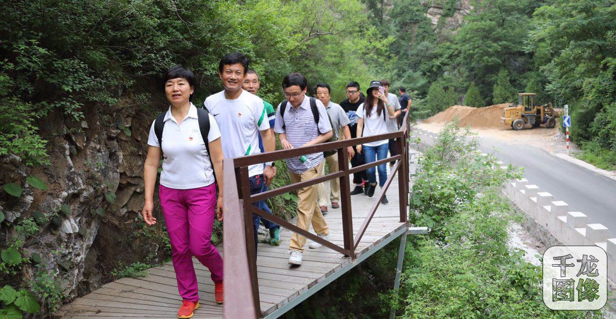 6月22日,北京市体育总会、北京市体育社团办公中心联合党支部、15个体育社团党建工作联络员及30余家首都新闻媒体记者在房山区大安山乡健步行形式,考察大安山乡运动公园场地和器材设施,学习大安山乡推进全民健身体育产业发展的经验。图为考察队成员徒步峪壶峰登山步道。千龙网记者 戚连民摄