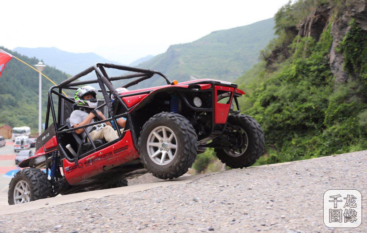 6月22日,北京市体育总会、北京市体育社团办公中心联合党支部、15个体育社团党建工作联络员及30余家首都新闻媒体记者在房山区大安山乡健步行形式,考察大安山乡运动公园场地和器材设施,学习大安山乡推进全民健身体育产业发展的经验。图为驾驶赛车在樵涧峰越野运动公园内体验赛车运动带来的激情和刺激。千龙网记者 戚连民摄