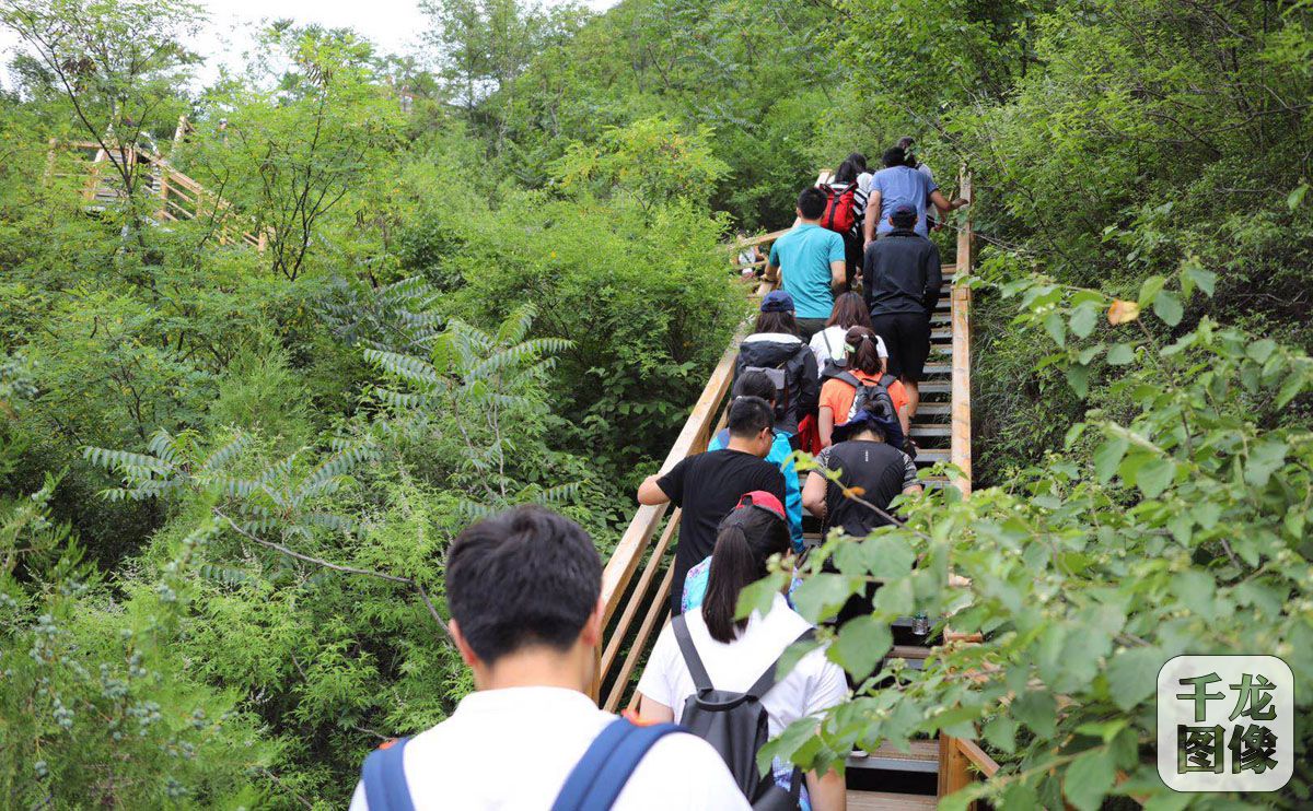 6月22日,北京市体育总会、北京市体育社团办公中心联合党支部、15个体育社团党建工作联络员及30余家首都新闻媒体记者在房山区大安山乡健步行形式,考察大安山乡运动公园场地和器材设施,学习大安山乡推进全民健身体育产业发展的经验。图为考察队成员徒步峪壶峰登山步道。千龙网记者 戚连民摄