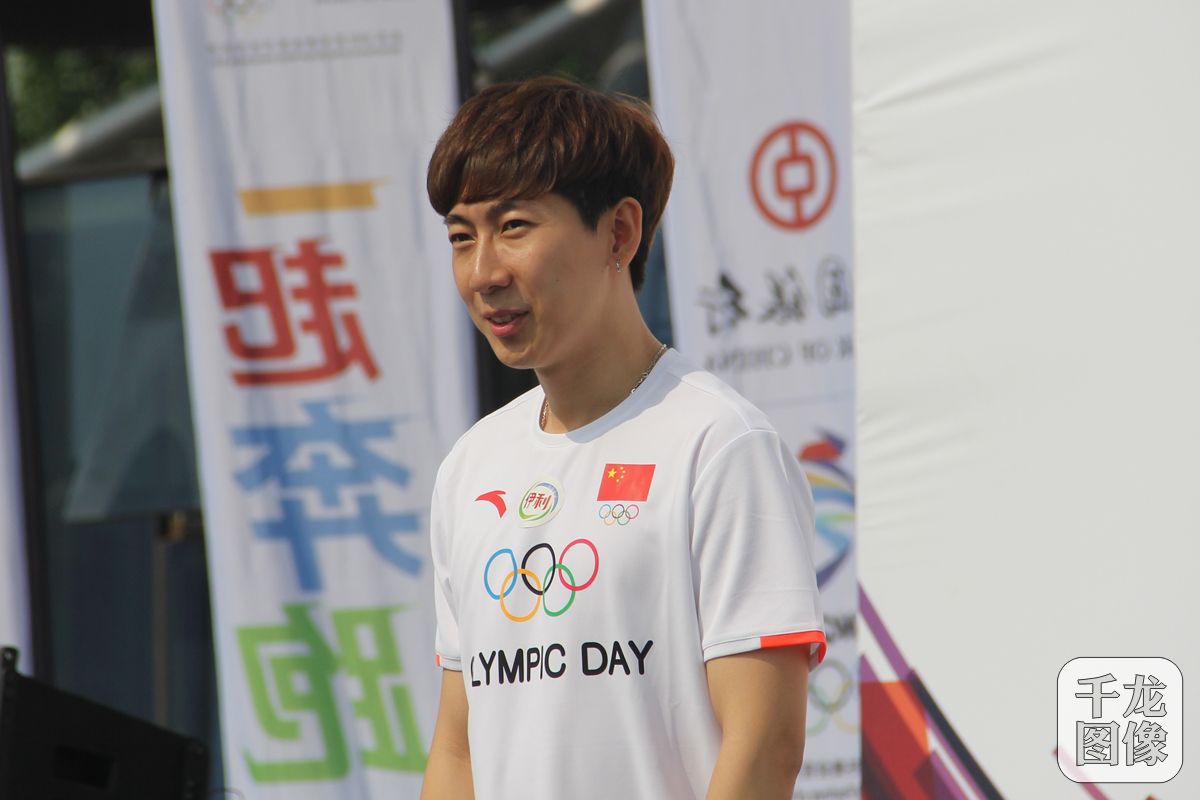 6月23日上午9时,中国奥委会2018年第32届奥林匹克日活动在8个城市同步启动。图为著名运动员韩天宇出席了在北京奥林匹克森林公园举行的主会场活动。千龙网记者 黄业摄