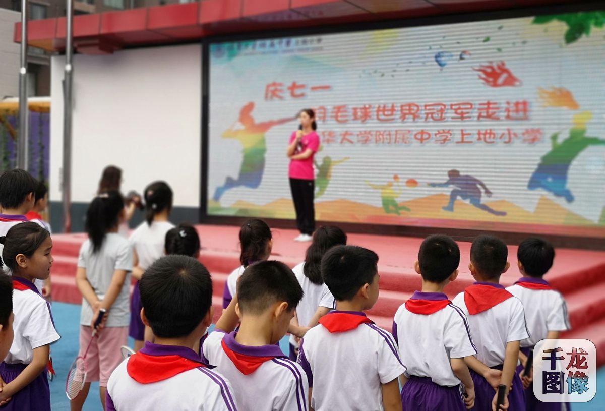 6月26日,北京市羽毛球运动协会党支部组织协会党员举行了“庆七一党员冠军进校园活动”。世界冠军王适娴和北京老年羽毛球队六名老党员等,一同走进清华大学附属中学上地小学开展相关活动。图为活动现场。千龙网发 主办方供图