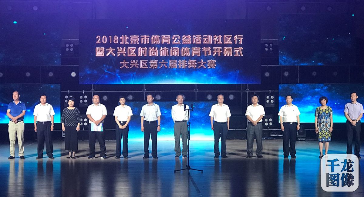 6月26日,“2018北京市体育公益活动社区行暨大兴区时尚休闲体育节开幕式第六届排舞大赛”在大兴区体育馆隆重举行。市人大原副主任、北京市体育基金会理事长孙康林,北京市体育局党组书记、局长赵文,北京市徒步运动协会会长史绍洁出席活动。图为活动现场。千龙网发 主办方供图