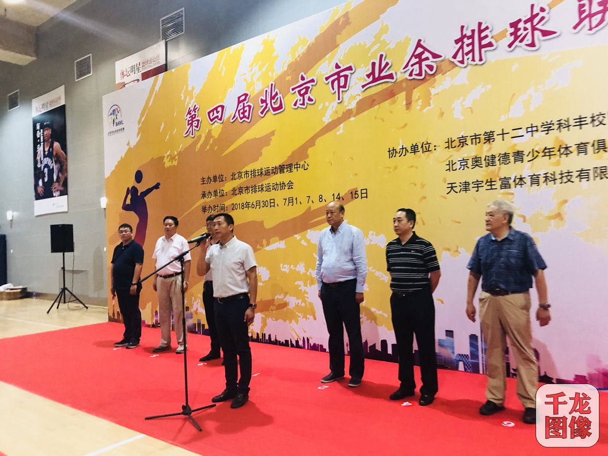 6月30日,第四届北京市业余排球联赛开幕式在北京市第十二中学科丰校区举行。图为北京市体育局青少处处长苏峻宣布比赛开幕。千龙网发 北京市排球运动管理中心供图