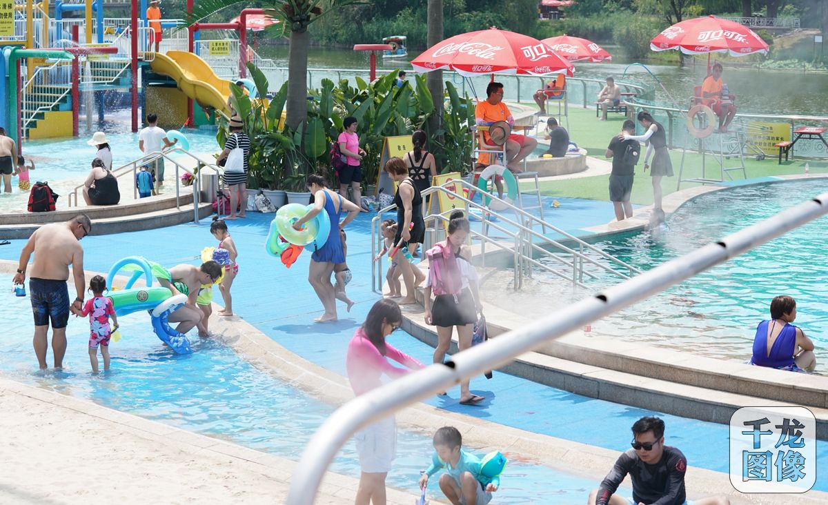 6月30日,2018年“北京海洋沙滩嘉年华”6月30日在朝阳公园开幕。从今天至8月31日,来游玩的市民除了可以在五千平米湖景泳池和两万平米奥运沙滩上戏水玩沙外,还可以观看世界杯,参加丰富的世界杯游乐活动,在周末直播节目上挑战北京纪录。图为市民在戏水区玩耍。千龙网记者 戚连民摄