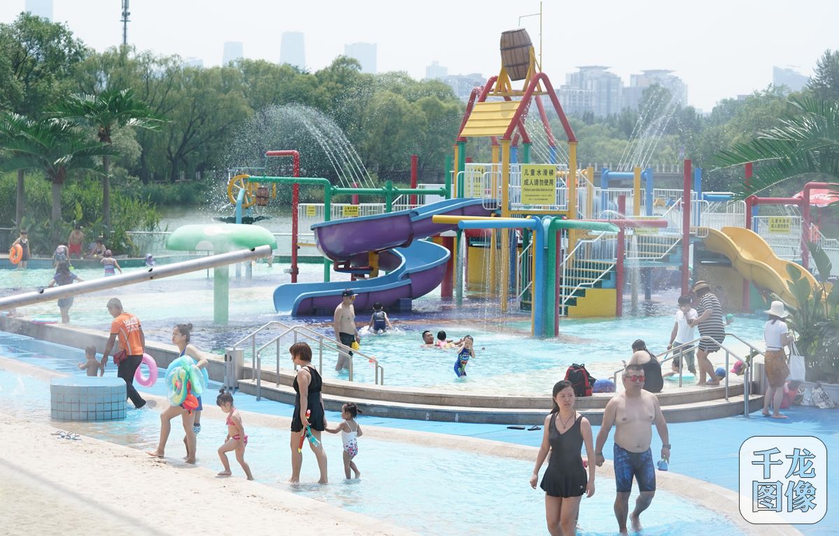 6月30日,2018年“北京海洋沙滩嘉年华”6月30日在朝阳公园开幕。从今天至8月31日,来游玩的市民除了可以在五千平米湖景泳池和两万平米奥运沙滩上戏水玩沙外,还可以观看世界杯,参加丰富的世界杯游乐活动,在周末直播节目上挑战北京纪录。图为市民在戏水区玩耍。千龙网记者 戚连民摄