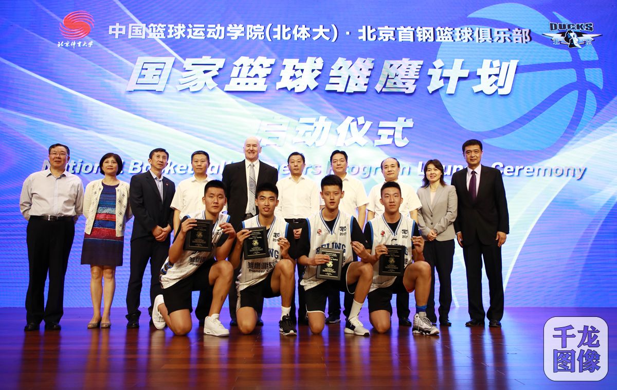 6月29日,“国家篮球雏鹰计划”在京启动,将面向全国选拔出男生、女生共50名雏鹰球员,10月赴美进行专业训练。图为与会嘉宾合影。千龙网发 主办方供图