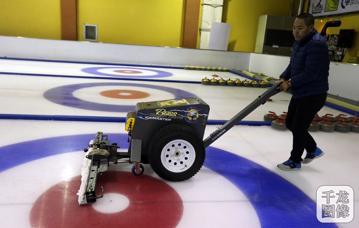 7月3日,2018年全国残疾人冰壶锦标赛在京开幕。比赛分为轮椅组和听障组两个组别,将进行循环和交叉淘汰两个阶段的比赛,最终确定冠军归属。图为工作人员清理冰面。千龙网记者 戚连民摄
