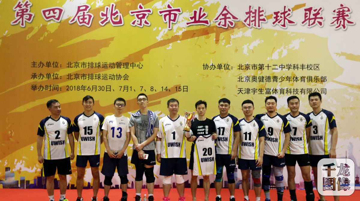 7月15日,第四届北京市业余排球联赛落下帷幕,64支队伍、855人参加比赛,经过6天231场的激烈角逐,决出各个组别的冠亚季军。图为获奖球队合影。千龙网记者 戚连民摄