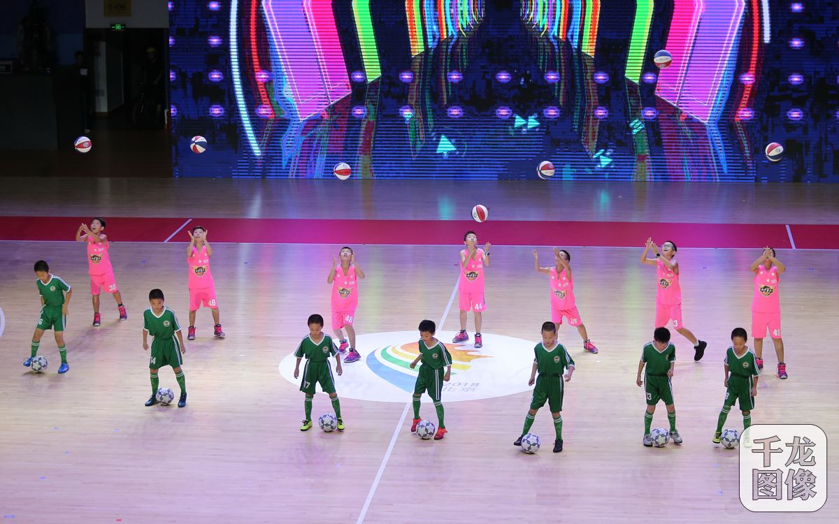 7月18日,北京市第十五届运动会开幕式18日在国家奥林匹克体育中心体育馆举行。本次开幕式以“全民健身 你我同行 助力冬奥 健康北京”为主题,共约4000名运动员和裁判员及观众参加。图为足球篮球表演。千龙网记者 戚连民摄