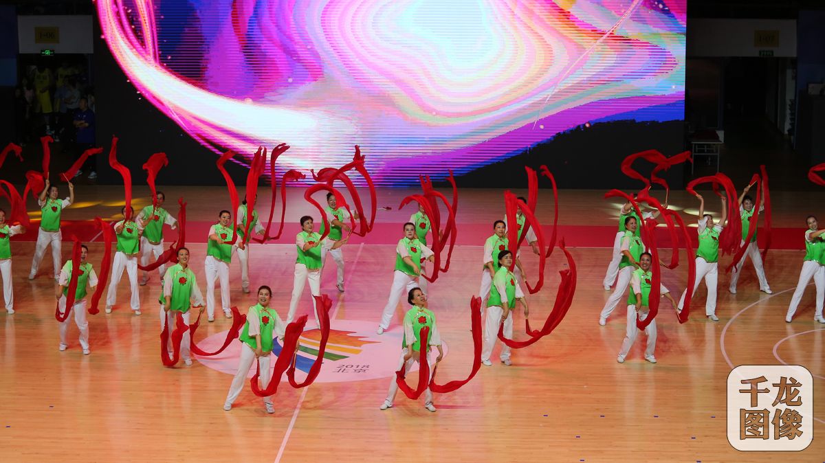 7月18日,北京市第十五届运动会开幕式18日在国家奥林匹克体育中心体育馆举行。本次开幕式以“全民健身 你我同行 助力冬奥 健康北京”为主题,共约4000名运动员和裁判员及观众参加。图为红绸舞表演。千龙网记者 戚连民摄
