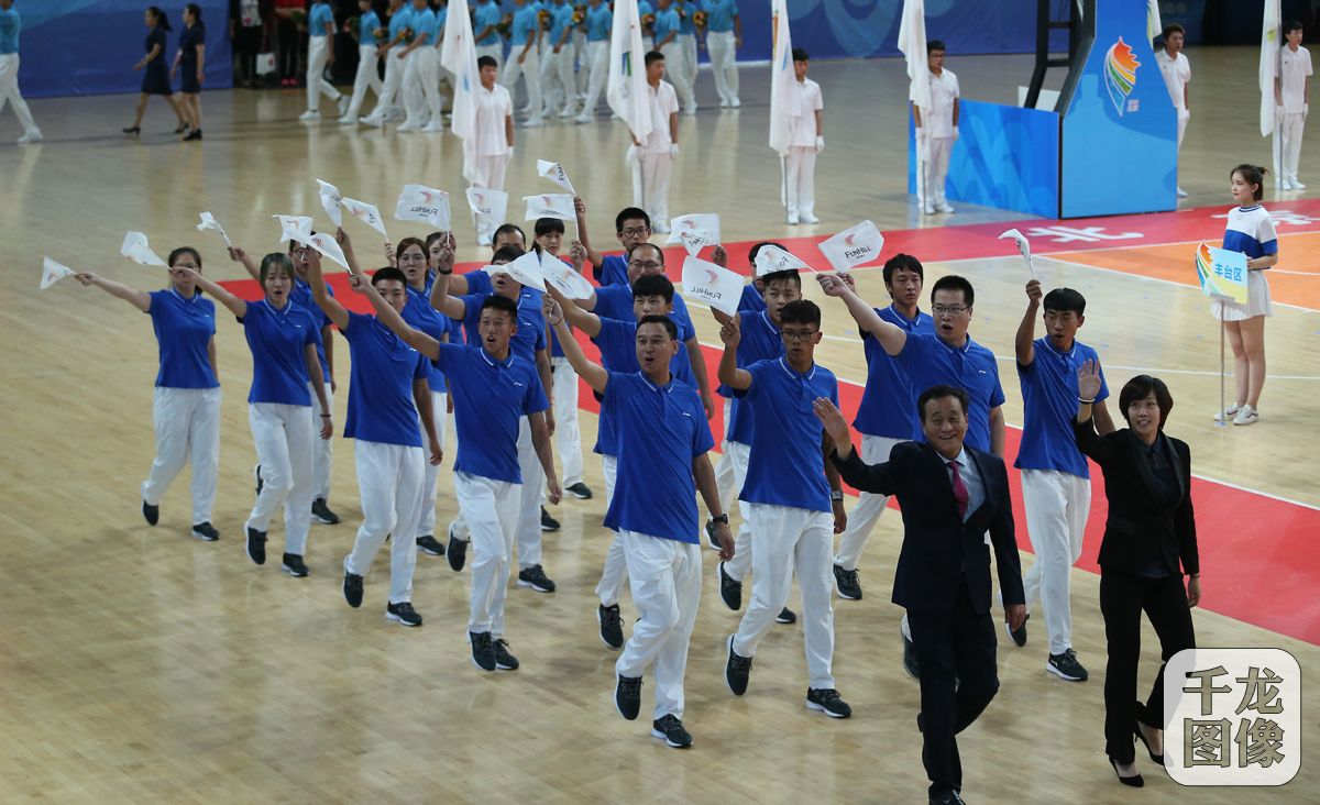 7月18日,北京市第十五届运动会开幕式18日在国家奥林匹克体育中心体育馆举行。本次开幕式以“全民健身 你我同行 助力冬奥 健康北京”为主题,共约4000名运动员和裁判员及观众参加。图为房山代表团入场。千龙网记者 戚连民摄