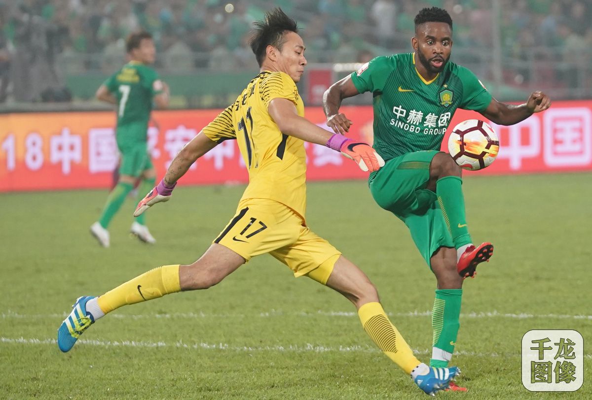 7月18日,2018赛季中超联赛第12轮北京中赫国安主场迎战河南建业,经过90分钟激战,最终国安2-1战胜建业。图为双方比赛精彩瞬间。千龙网记者 戚连民摄