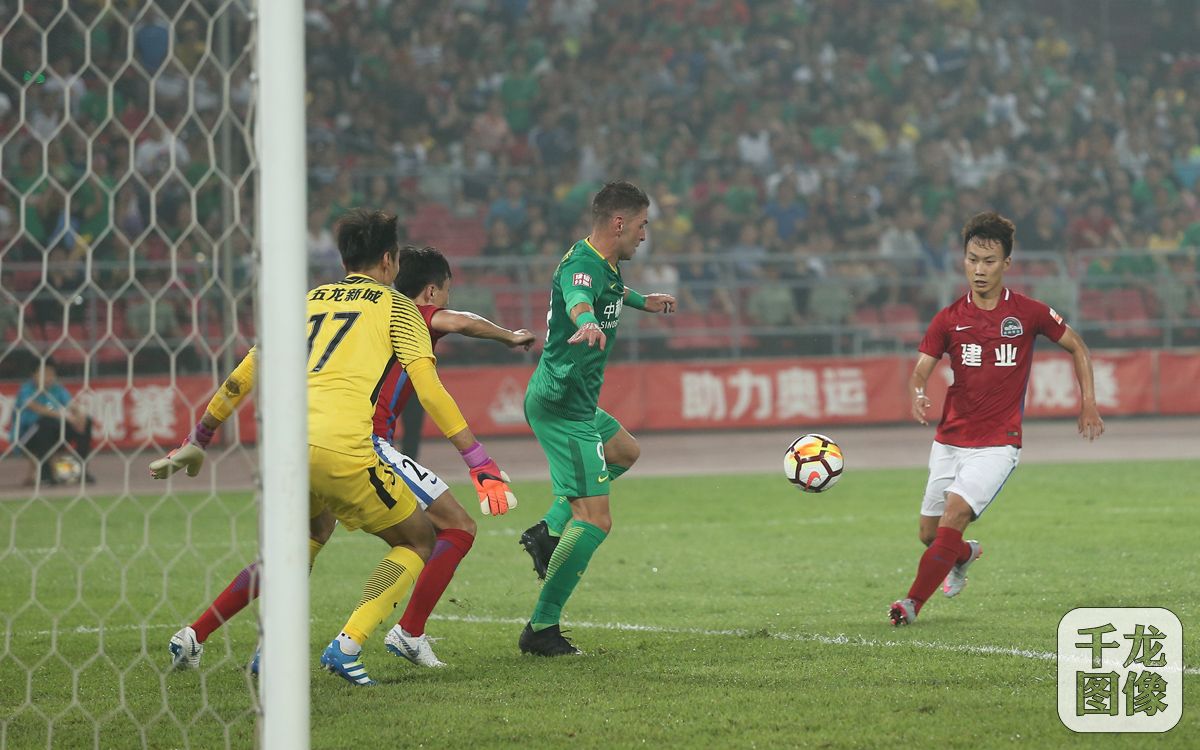 7月18日,2018赛季中超联赛第12轮北京中赫国安主场迎战河南建业,经过90分钟激战,最终国安2-1战胜建业。图为双方比赛精彩瞬间。千龙网记者 戚连民摄