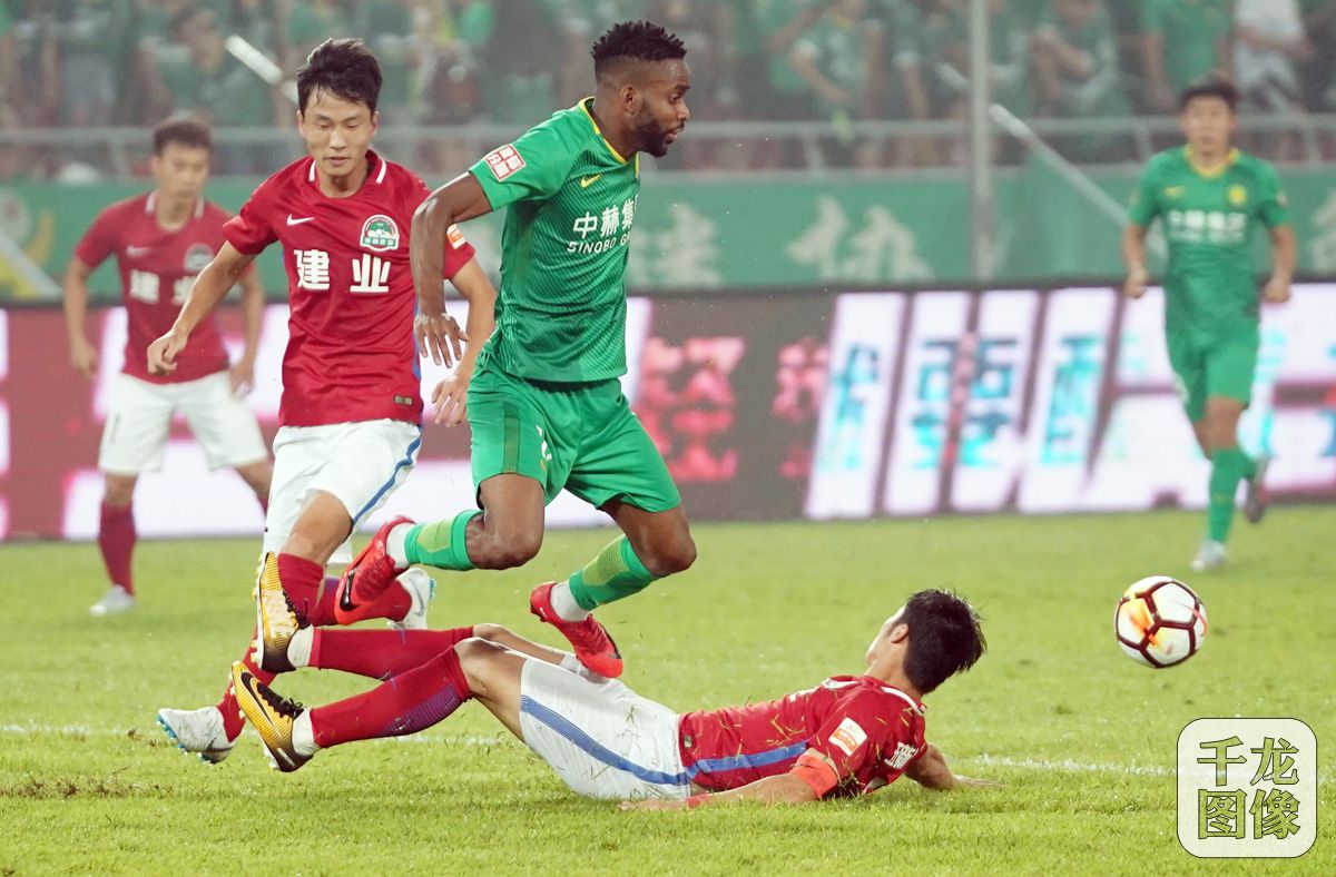 7月18日,2018赛季中超联赛第12轮北京中赫国安主场迎战河南建业,经过90分钟激战,最终国安2-1战胜建业。图为双方比赛精彩瞬间。千龙网记者 戚连民摄