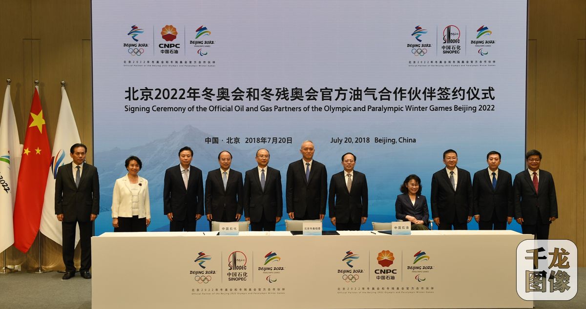 北京市委书记、北京冬奥组委主席蔡奇,国家体育总局局长、北京冬奥组委执行主席苟仲文,河北省省长、北京冬奥组委执行主席许勤,中国残联主席、北京冬奥组委执行主席张海迪,北京冬奥组委副主席杨树安,中国石化党组书记、董事长戴厚良,中国石油党组副书记、总经理章建华出席签约仪式。北京冬奥组委执行副主席张建东与中国石油党组副书记、副总经理徐文荣和中国石化党组副书记、副总经理李云鹏共同签署赞助协议。北京冬奥组委秘书长韩子荣主持签约仪式。
