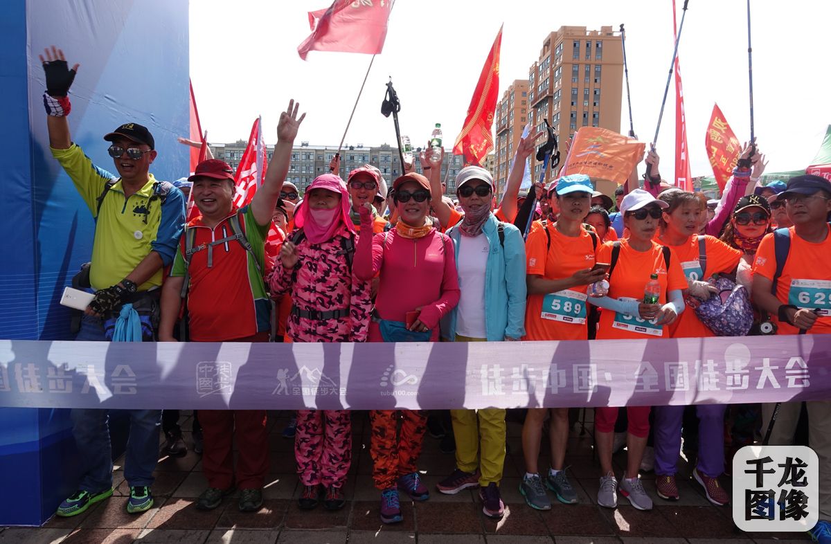 7月21日,2018徒步中国·全国徒步大会黑瞎子岛站在在黑龙江抚远市黑瞎子岛举行,总计545名队员参与了此次徒步活动。图为参赛队员整装待发。千龙网记者 戚连民摄