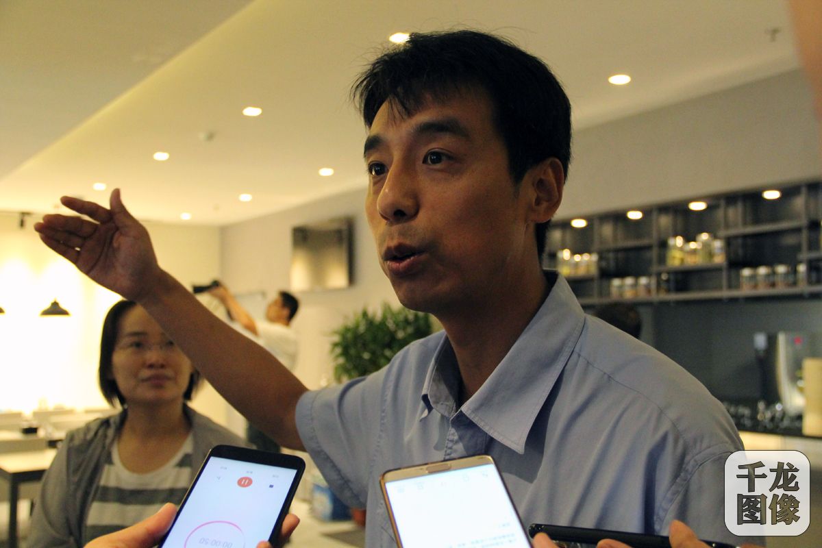 近距离感受“冬奥氛围”。图为首钢工作人员接受记者采访。千龙网记者 黄业摄