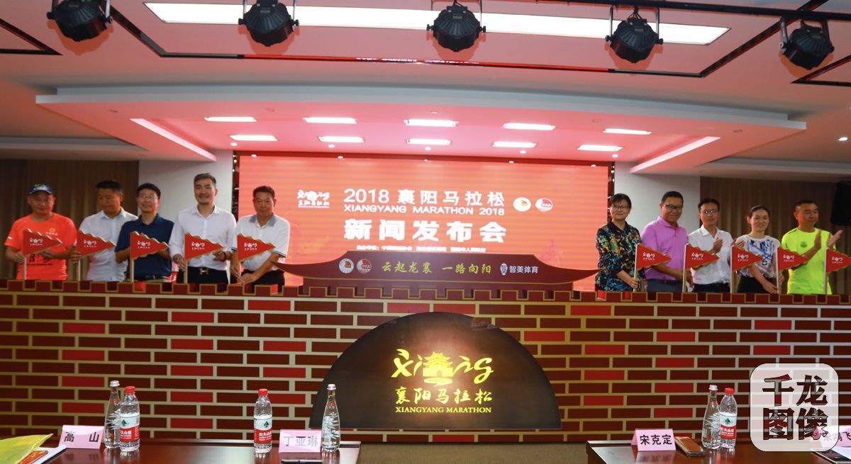 7月26日,2018襄阳马拉松赛组委会在京宣布,比赛将于10月20日鸣枪起跑,报名工作7月27日上午10:00启动。图为与会嘉宾启动赛事装置。千龙网发 主办方供图