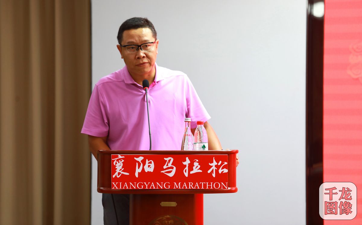 7月26日,2018襄阳马拉松赛组委会在京宣布,比赛将于10月20日鸣枪起跑,报名工作7月27日上午10:00启动。图为国家体育总局田径运动管理中心社会活动部副主任高山致辞。千龙网发 主办方供图