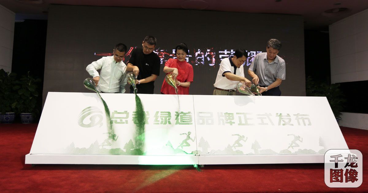 8月8日,以“共创生态绿道,同享碧水蓝天”为主题的2018总裁绿道·长白山森林马拉松新闻发布会在京举行。会上吉林省长白山保护开发区管理委员会副主任李一杨邀请企业家朋友到长白山,在感受大美长白山的同时,共同推动长白山的绿色发展。图为与会嘉宾共同发布总裁绿道马拉松赛事品牌。千龙网发 主办方供图