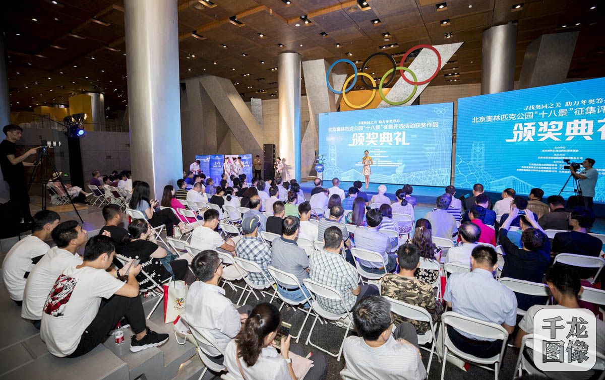8月9日,北京奥林匹克公园管委会发布了北京奥林匹克公园“十八景”。图为出席发布仪式的领导和专家为获奖作者颁奖。千龙网发 夏波光摄