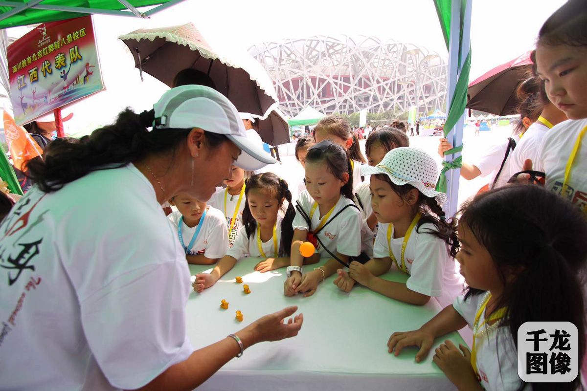 8月10日,第九届北京奥运城市体育文化节“国际交流日-北京欢迎你”项目在奥林匹克公园举行,来自十多个国家1500余名不同肤色的国际青少年参加活动。图为青少年学习抓羊拐。千龙网发 主办方供图