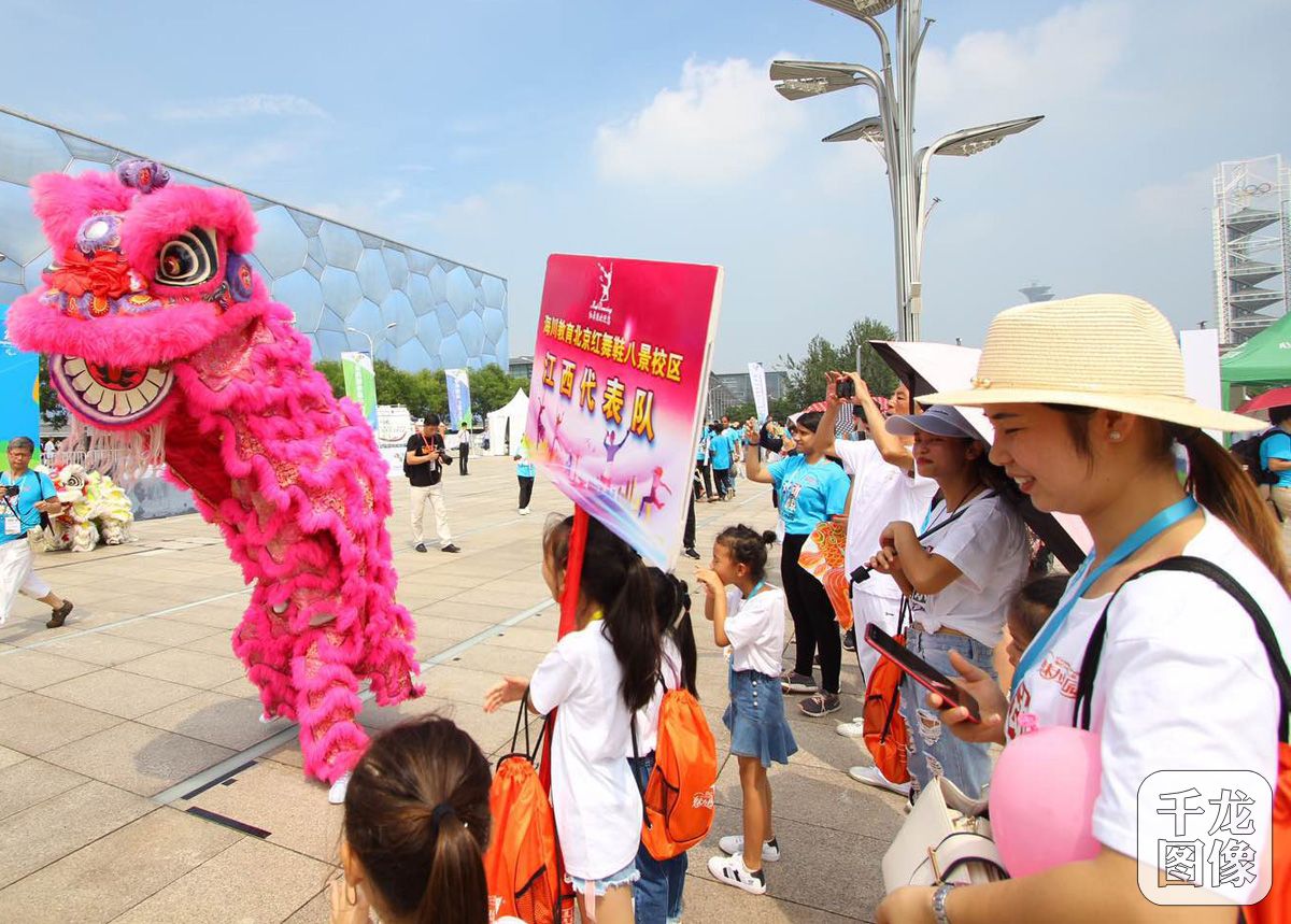 8月10日,第九届北京奥运城市体育文化节“国际交流日-北京欢迎你”项目在奥林匹克公园举行,来自十多个国家1500余名不同肤色的国际青少年参加活动。图为中外青少年观看舞狮表演。千龙网发 主办方供图