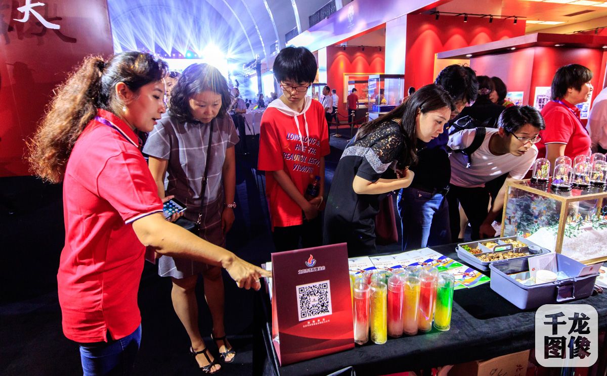 8月8日,以体育公益宣传推广活动为内容的主题展亮相“2018北京奥林匹克博览会”。图为观众在展台前驻足观看。千龙网发 主办方供图