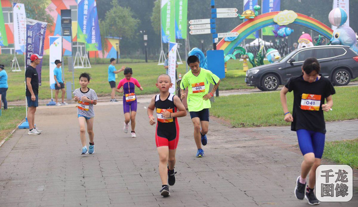 8月11日,2018年北京奥运城市体育文化节—成长勋章小铁人三项赛在顺义奥林匹克水上中心举办。图为比赛现场。千龙网发 主办方供图