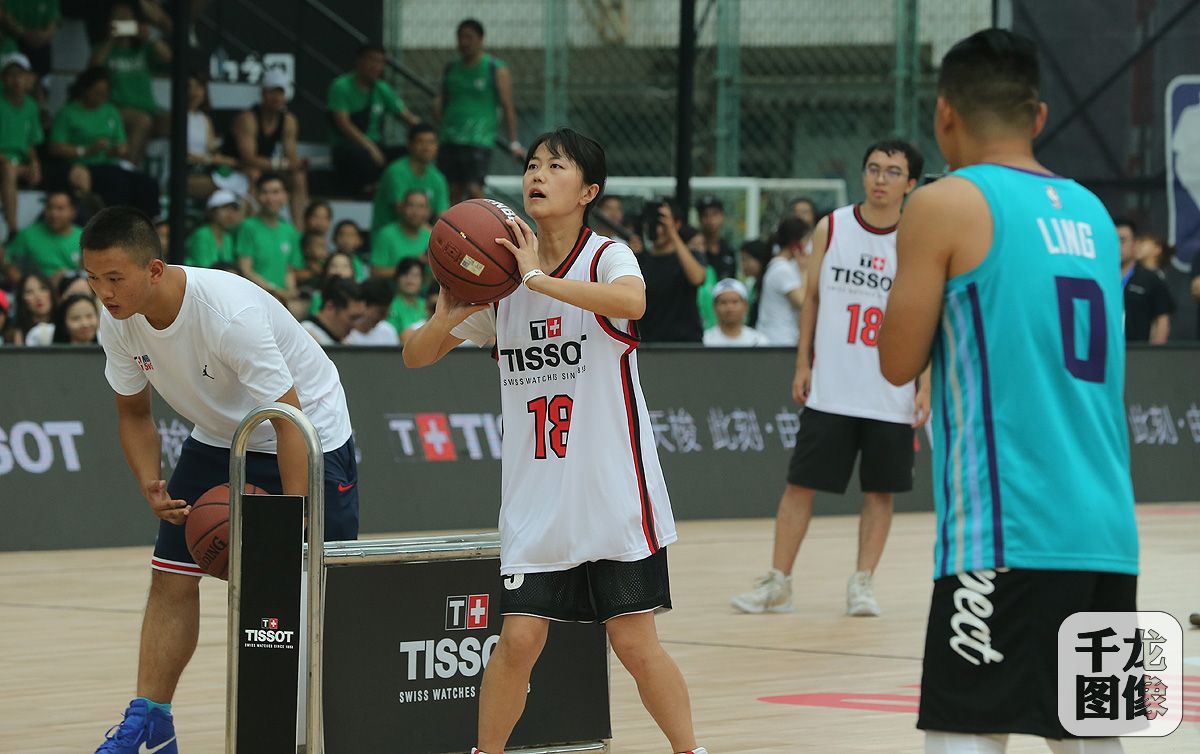 8月11日,NBA 5v5精英篮球赛北京站在东单体育中心举行,夏洛特黄蜂队当家球星肯巴·沃克亮相赛场,为球员助阵并送上自己的祝福。达拉斯独行侠啦啦队、吉祥物Dallas Mavericks Dancers及Champ联袂出征,为观众们送上精彩的表演及最原汁原味的NBA赛事体验。图为投篮大赛。千龙网记者 戚连民摄