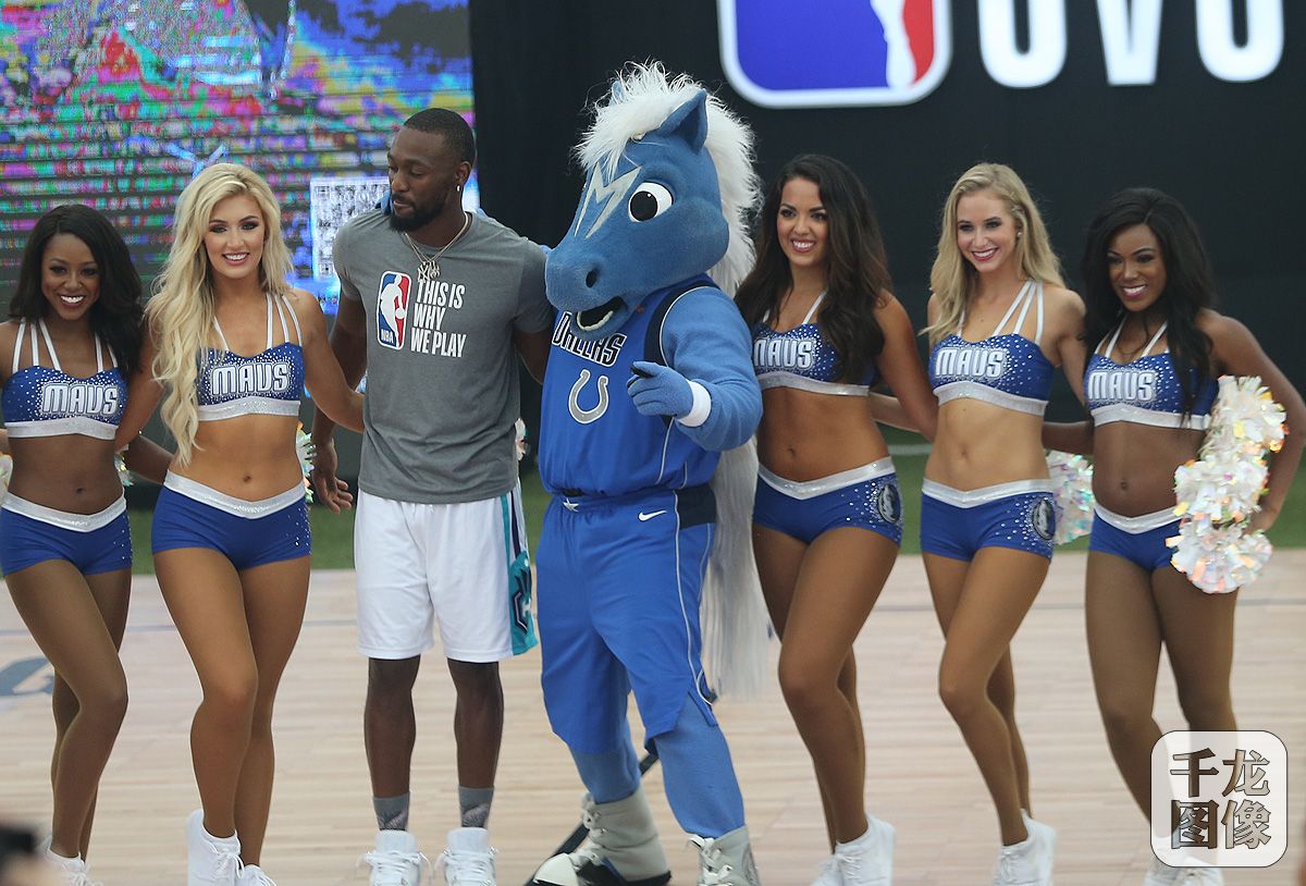 8月11日,NBA 5v5精英篮球赛北京站在东单体育中心举行。图为夏洛特黄蜂队当家球星肯巴·沃克亮相赛场,为球员助阵并送上自己的祝福。达拉斯独行侠啦啦队、吉祥物Dallas Mavericks Dancers及Champ联袂出征,为观众们送上精彩的表演及最原汁原味的NBA赛事体验。千龙网记者 戚连民摄
