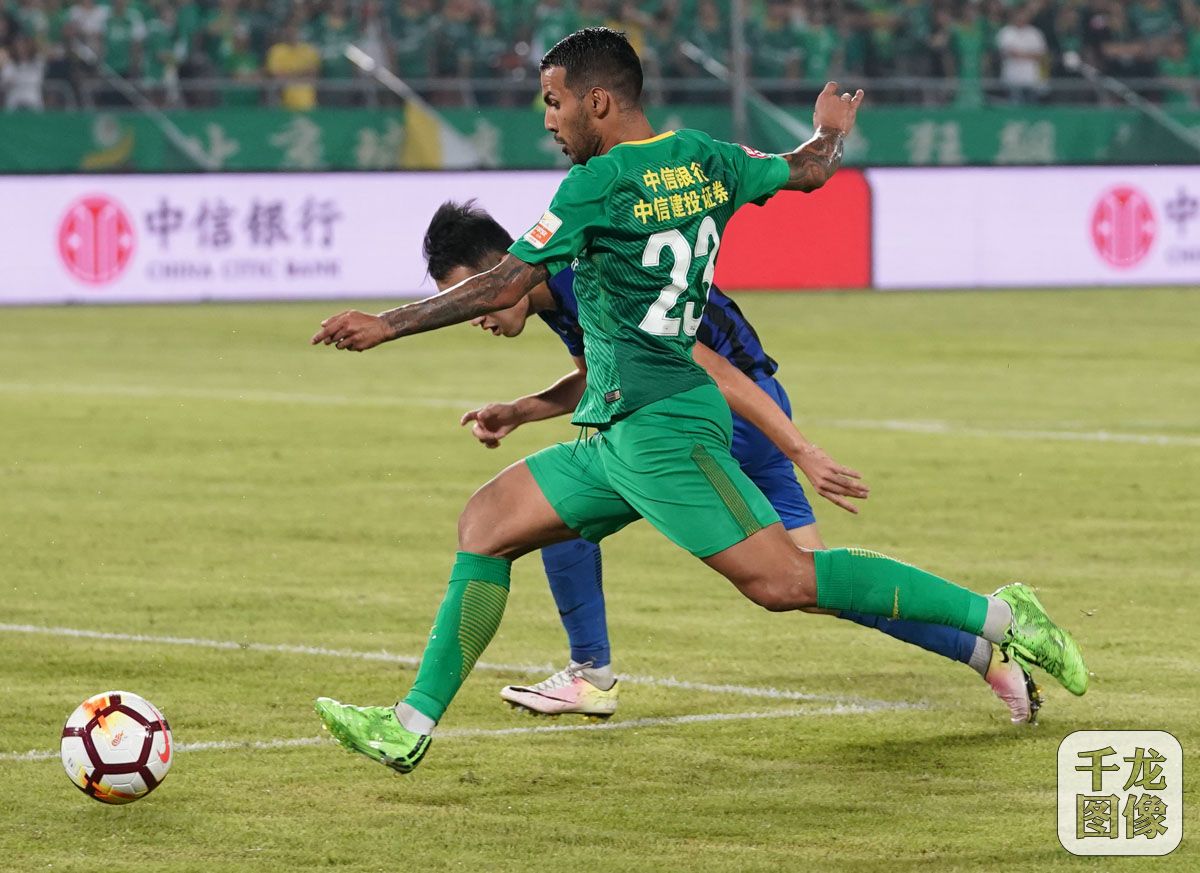 千龙网北京8月10日讯 中超8月10日上演焦点战役,第17轮比赛,国安坐镇工体迎战苏宁。上半场较量,张稀哲为国安打破僵局;下半场,雷腾龙为国安扩大领先优势,第78分钟,张瑀自摆乌龙,第82分钟,比埃拉锁定胜局,国安最终3-1战胜苏宁,连续16轮不败继续领跑积分榜。图为本场比赛精彩瞬间。千龙网记者 戚连民摄