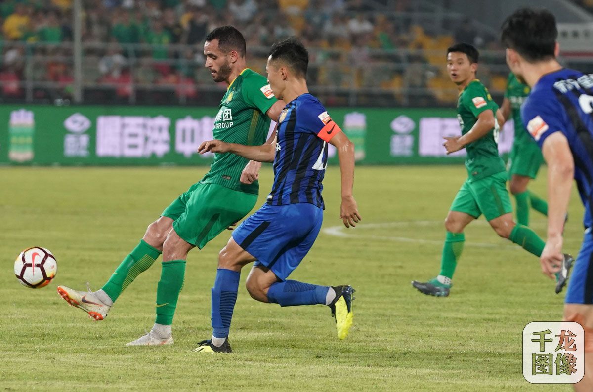 千龙网北京8月10日讯 中超8月10日上演焦点战役,第17轮比赛,国安坐镇工体迎战苏宁。上半场较量,张稀哲为国安打破僵局;下半场,雷腾龙为国安扩大领先优势,第78分钟,张瑀自摆乌龙,第82分钟,比埃拉锁定胜局,国安最终3-1战胜苏宁,连续16轮不败继续领跑积分榜。图为本场比赛精彩瞬间。千龙网记者 戚连民摄
