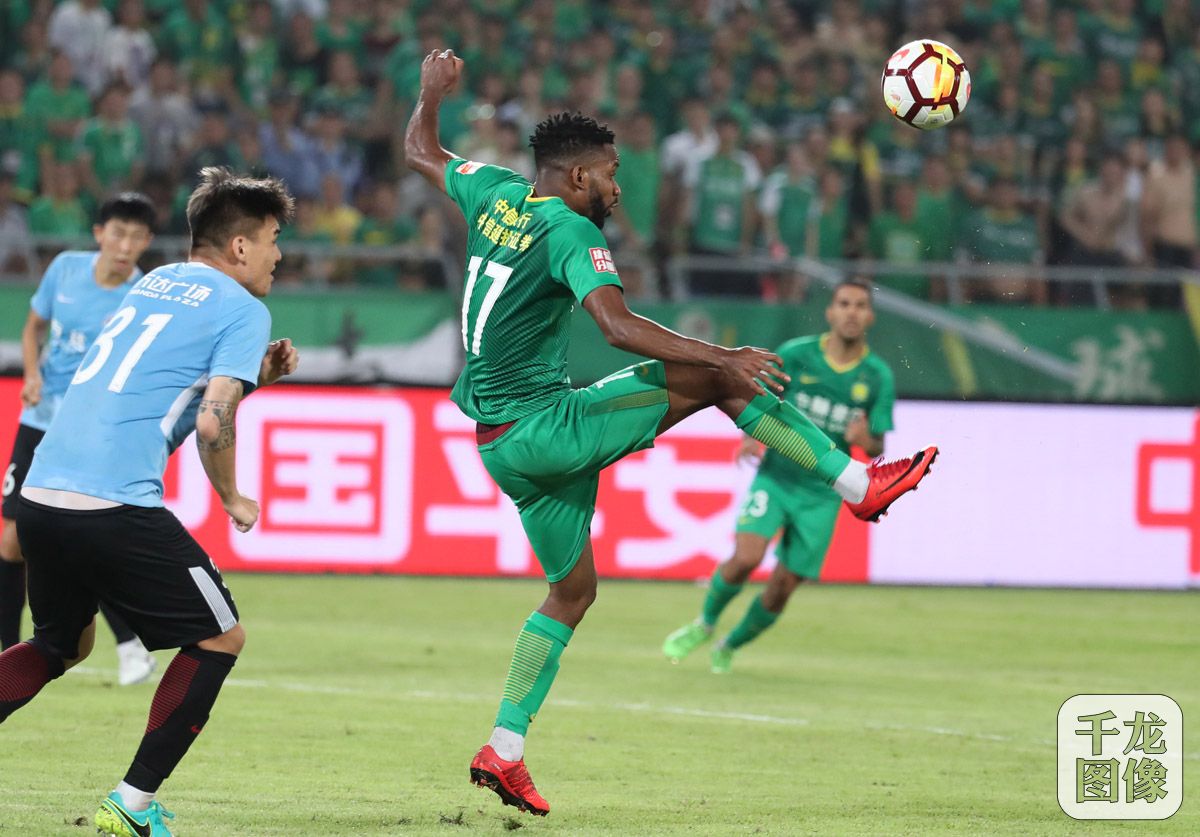 8月14日,中超联赛北京中赫国安队主场迎战“升班马”大连一方队,凭借巴坎布的梅开二度以及比埃拉、朴成和奥古斯托的进球,北京中赫国安队5:2完胜对手。图为本场比赛精彩瞬间。千龙网记者 戚连民摄