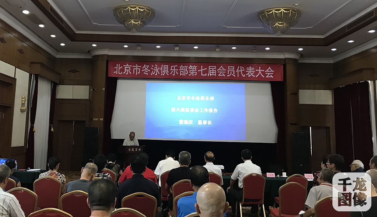 8月15日,北京市冬泳俱乐部第七届会员代表大会在京召开,孟昭澄主席代表第六届理事会作工作报告,王子君当选新会长。图为会议现场。千龙网发 主办方供图