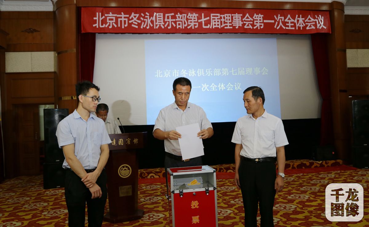 8月15日,北京市冬泳俱乐部第七届会员代表大会在京召开,孟昭澄主席代表第六届理事会作工作报告,王子君当选新会长。图为投票现场。千龙网发 主办方供图