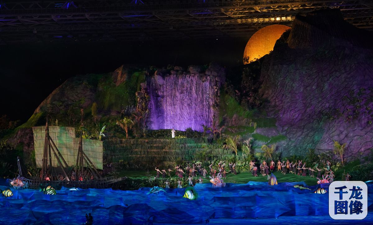 8月18日,2018年印尼雅加达亚运会开幕式在朋加诺体育场举行。在圣火点燃时刻,印尼羽毛球名宿王莲香走上山脉。当她点燃圣火的一刻,“岩浆”倾泻而下,将开幕式气氛推向高潮。图为开幕式现场精彩瞬间。千龙网发 萧峰摄