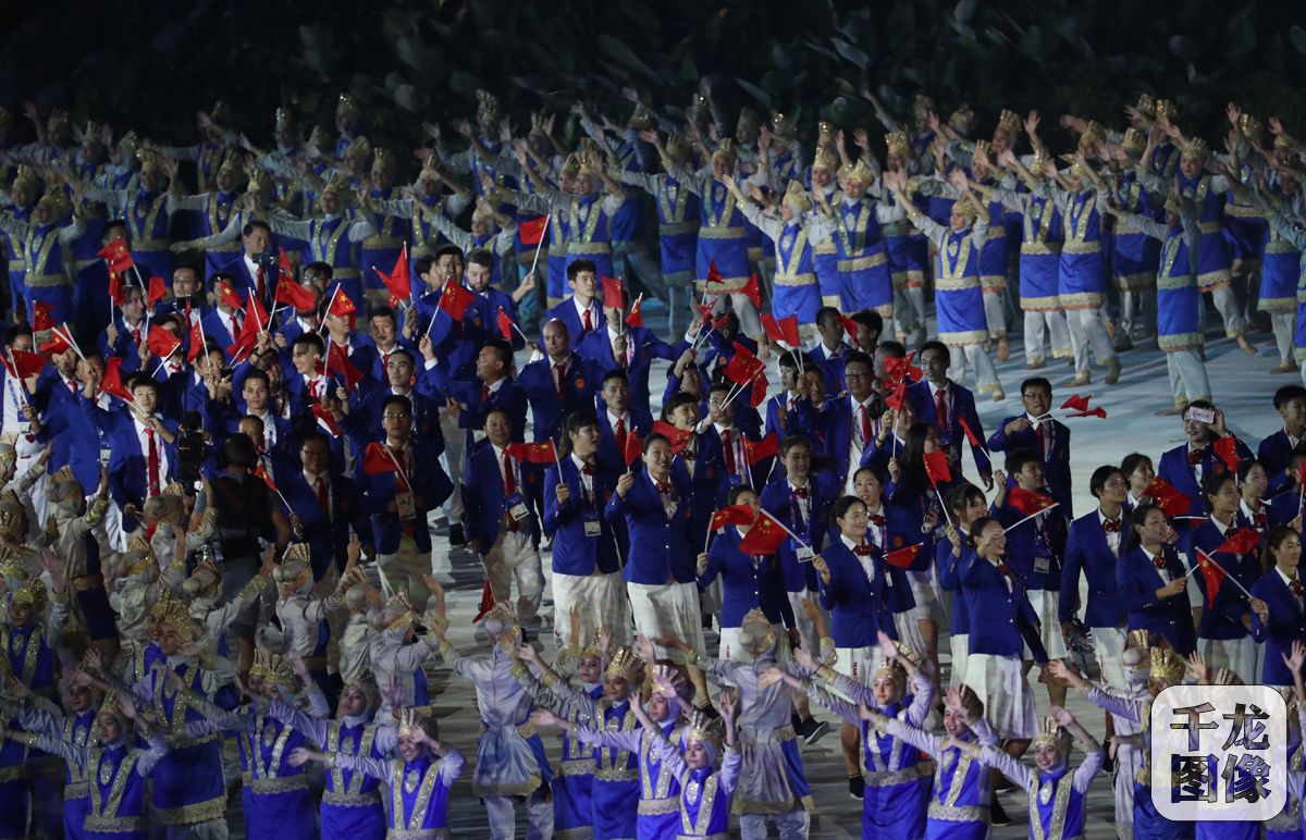 现场直击|雅加达亚运会开幕 羽球名宿王莲香点燃圣火(9)