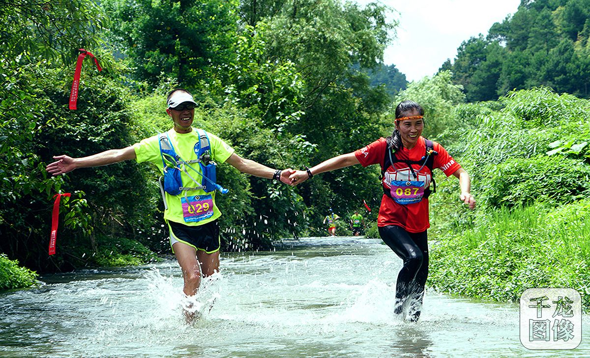 8月18日,“花海毕节·五彩金沙”2018中国·贵州·金沙玉簪花杯全国溯溪越野挑战赛鸣枪,来自全国16个省市的120余名精英选手参与42公里溯溪越野赛的角逐。图为选手在比赛中。千龙网发 中国登山协会共图